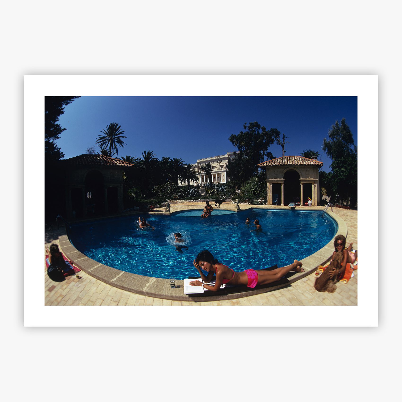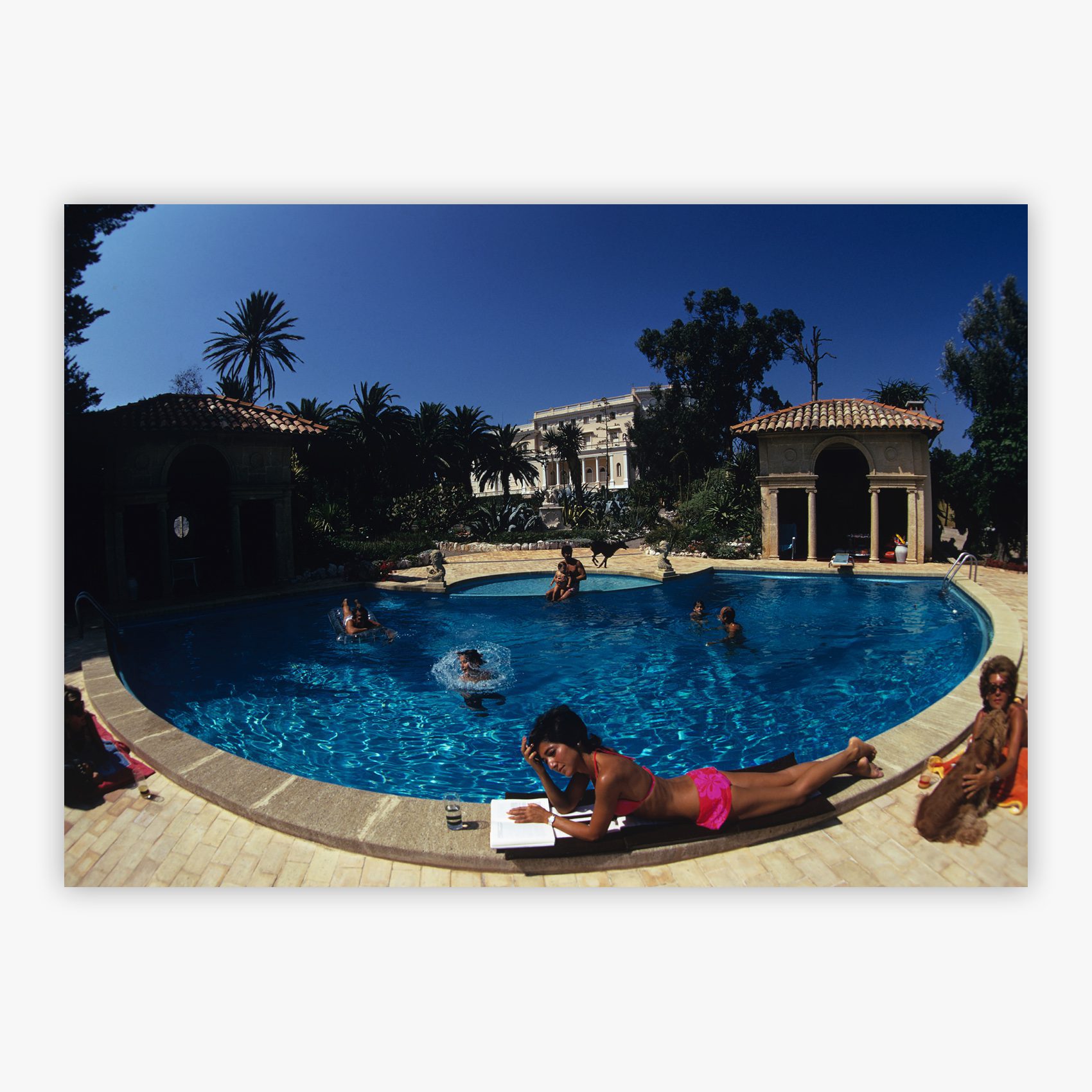 Les Cedres invites you into a 1973 poolside moment at the luxurious botanical garden in Saint-Jean-Cap-Ferrat, where the Marnier-Lapostolle family hosts an elegant soirée captured through Slim Aarons' masterful lens. The crystalline pool reflects the Mediterranean sun while guests lounge in effortless sophistication, surrounded by the lush botanical paradise that makes this estate legendary. Every detail, from the gentle ripples across the water's surface to the carefully arranged loungers and the verdant garden beyond, creates a scene of pure leisure that defined the French Riviera's golden era of refined living.