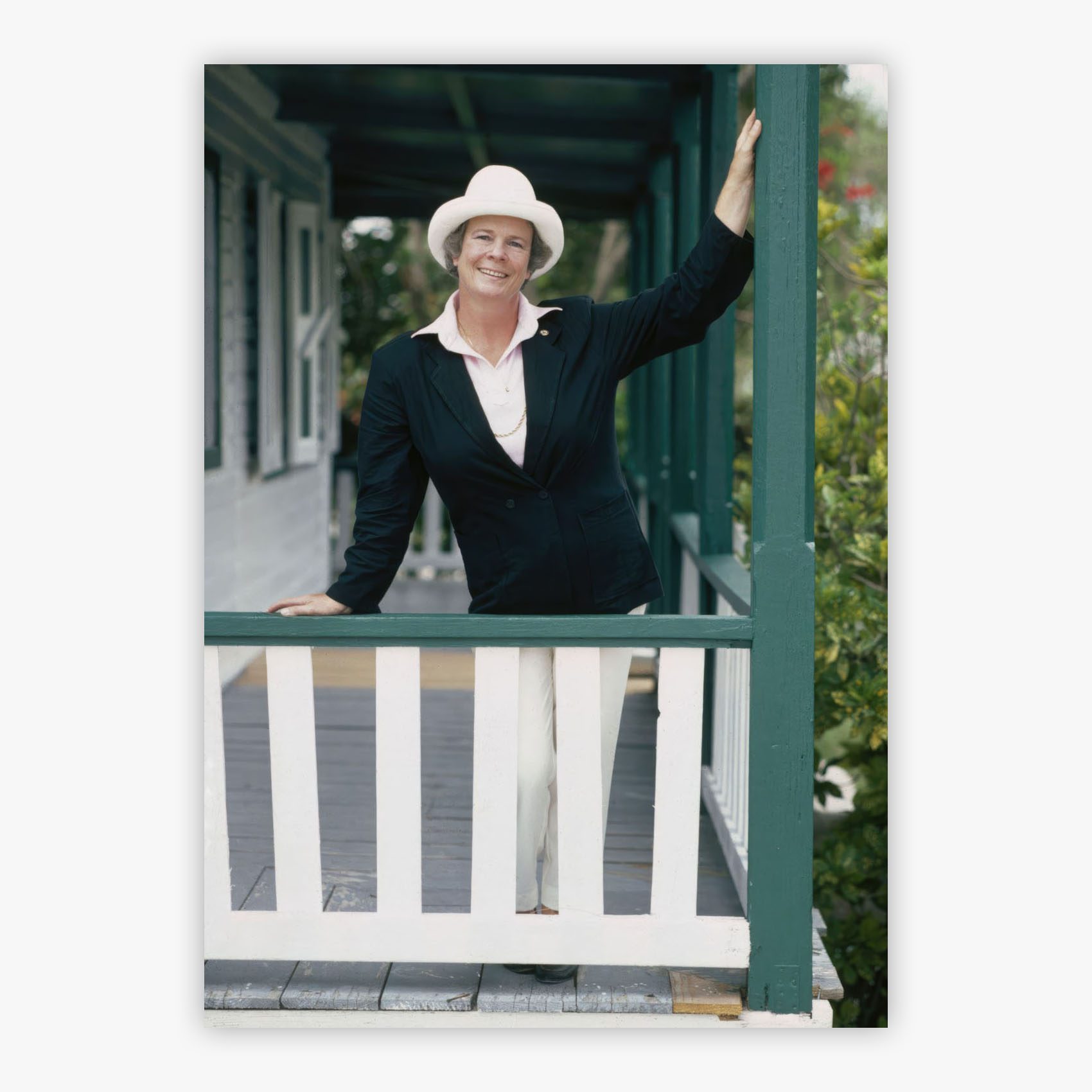 Marsh Harbour Porch is like a masterpiece painting that brings the vibrant spirit of the Bahamas to life. Just as a skilled artist captures the essence of a moment on canvas, Slim Aarons has frozen in time a captivating visual narrative that transports you to the idyllic Marsh Harbour in the beautiful Great Abaco Island. With Penny Turtle, the dynamic coordinator for Boat Harbour Marina, as its central figure, this photograph becomes a timeless piece that speaks volumes about the allure of the Bahamas in March 1986.